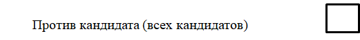 поставьте любой знак в пустом квадрате справа от фамилии, имени, отчества кандидата, за которого Вы голосуете, либо в квадрате справа от строки «Против кандидата».